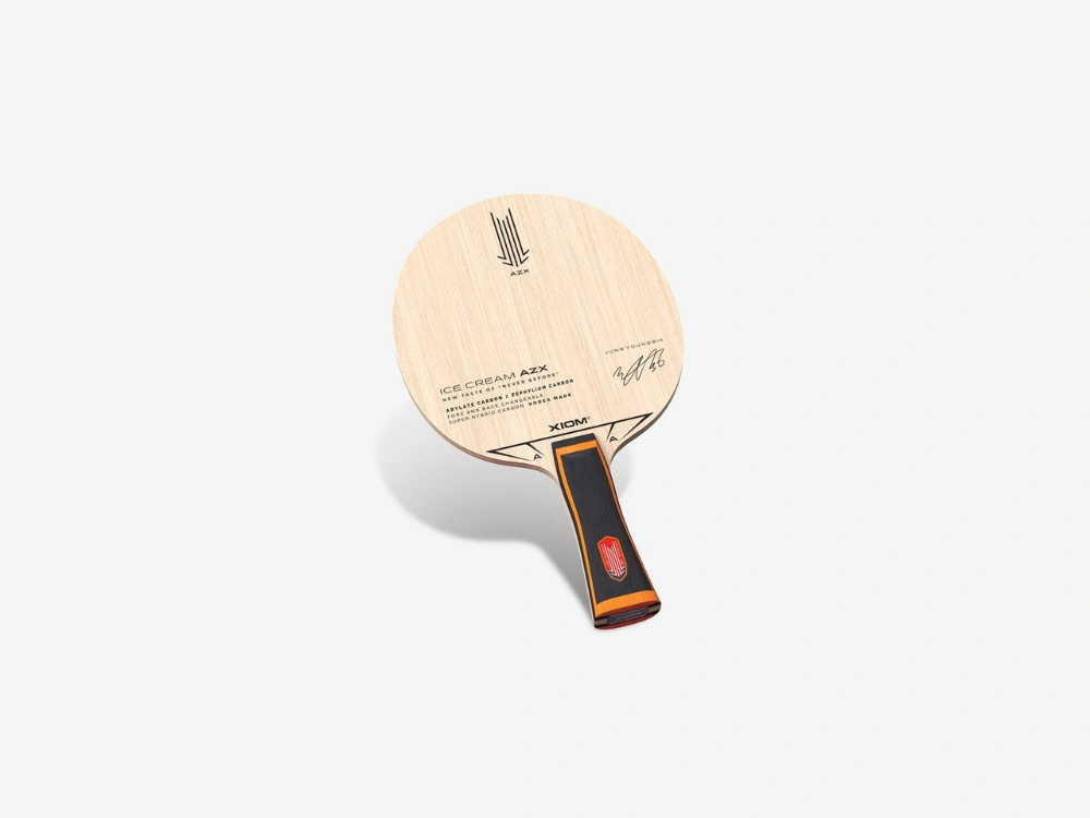 XIOM Ice Cream AZX is a unique 5+2 composite table tennis blade that features different composite materials on each side, Arylate-Carbon (ALC) on the forehand and Zephylium-Carbon (ZLC) on the backhand. This hybrid construction makes it one of the most versatile blades in the OFF category, allowing players to tailor their game by pairing different rubbers with each side to optimize speed, spin, and control.